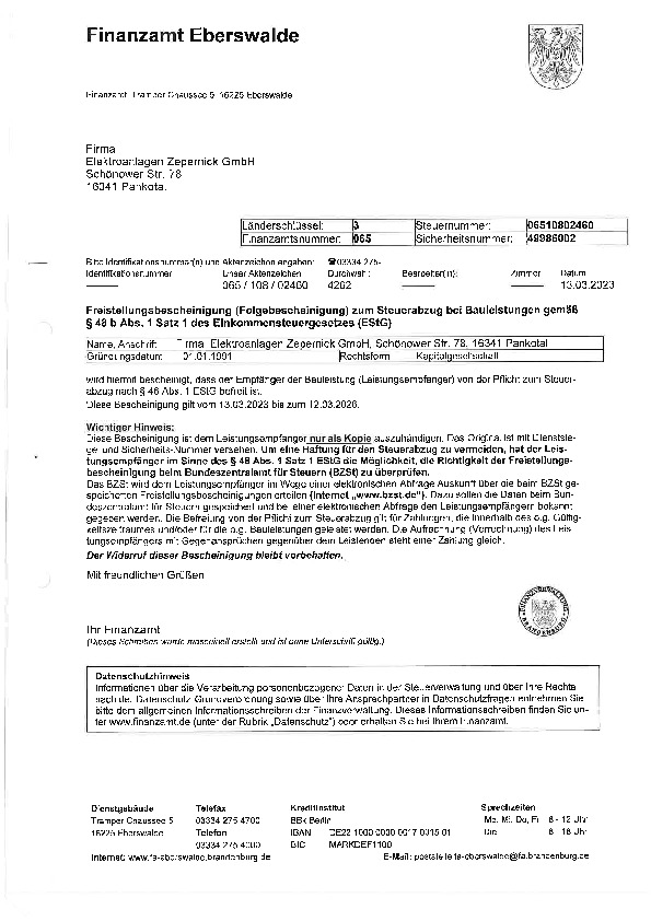 Wenn Sie erfahrene/r Elektrotechniker/in sind und Lust auf einen beruflichen Neubeginn haben, dann nehmen Sie mit uns Kontakt auf. Gerne können Sie unser Formular Ihre Anfrage für eine erste Kontaktaufnahme nutzen. Oder Sie besuchen uns an unserem Firmensitz in der Schönower Straße 78 in 16341 Panketal. Ob es eine technische Herausforderung zu meistern gilt, Interesse an einem Kostenangebot für Ihr individuelles Bau- oder Sanierungsvorhaben besteht; die Elektroanlagen Zepernick GmbH ist gerne erfolgreicher Partner an Ihrer Seite.